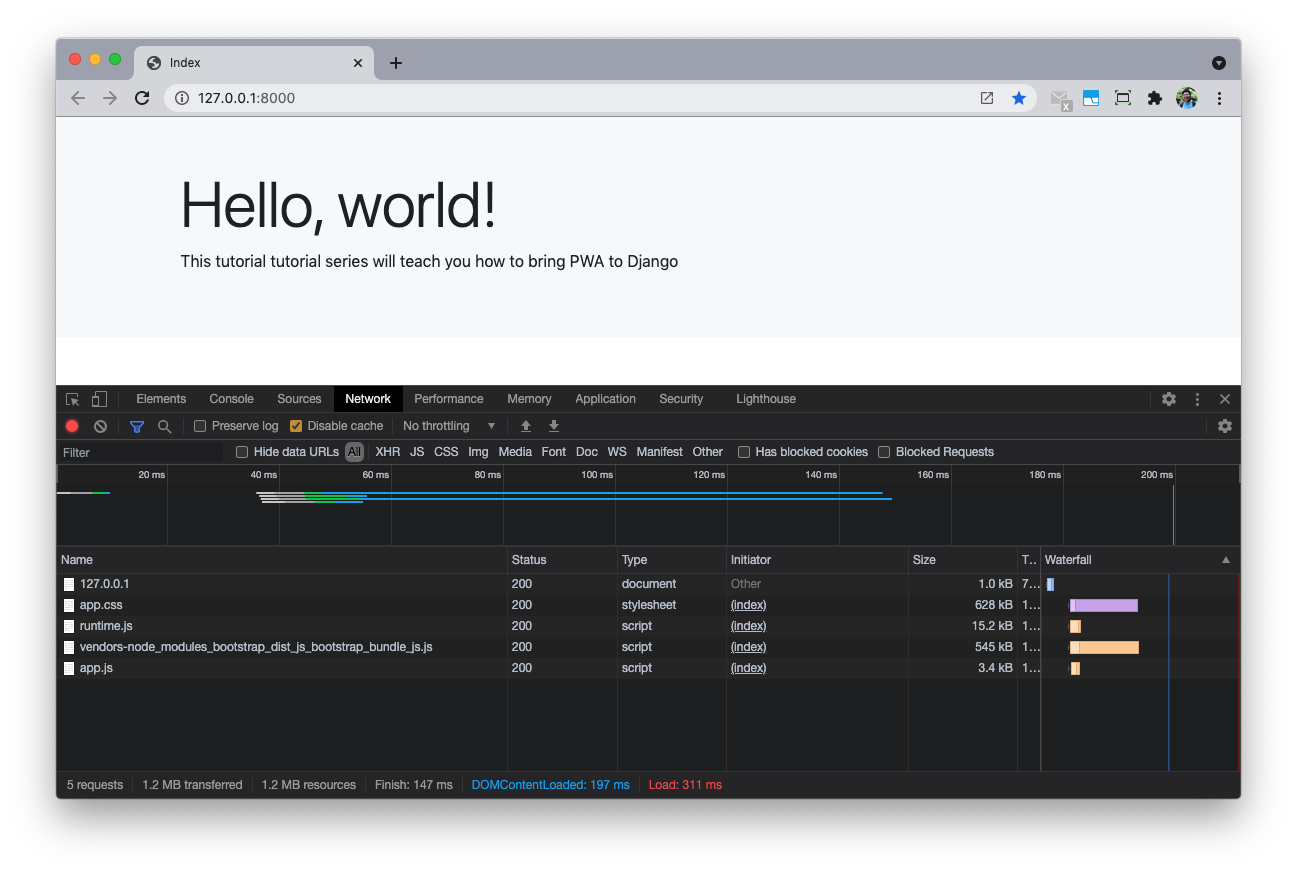(env)$ pip install -r requirements.txtAdd webpack_boilerplate (brought by python-webpack-boilerplate) to the INSTALLED_APPS in django_pwa_app/settings.py