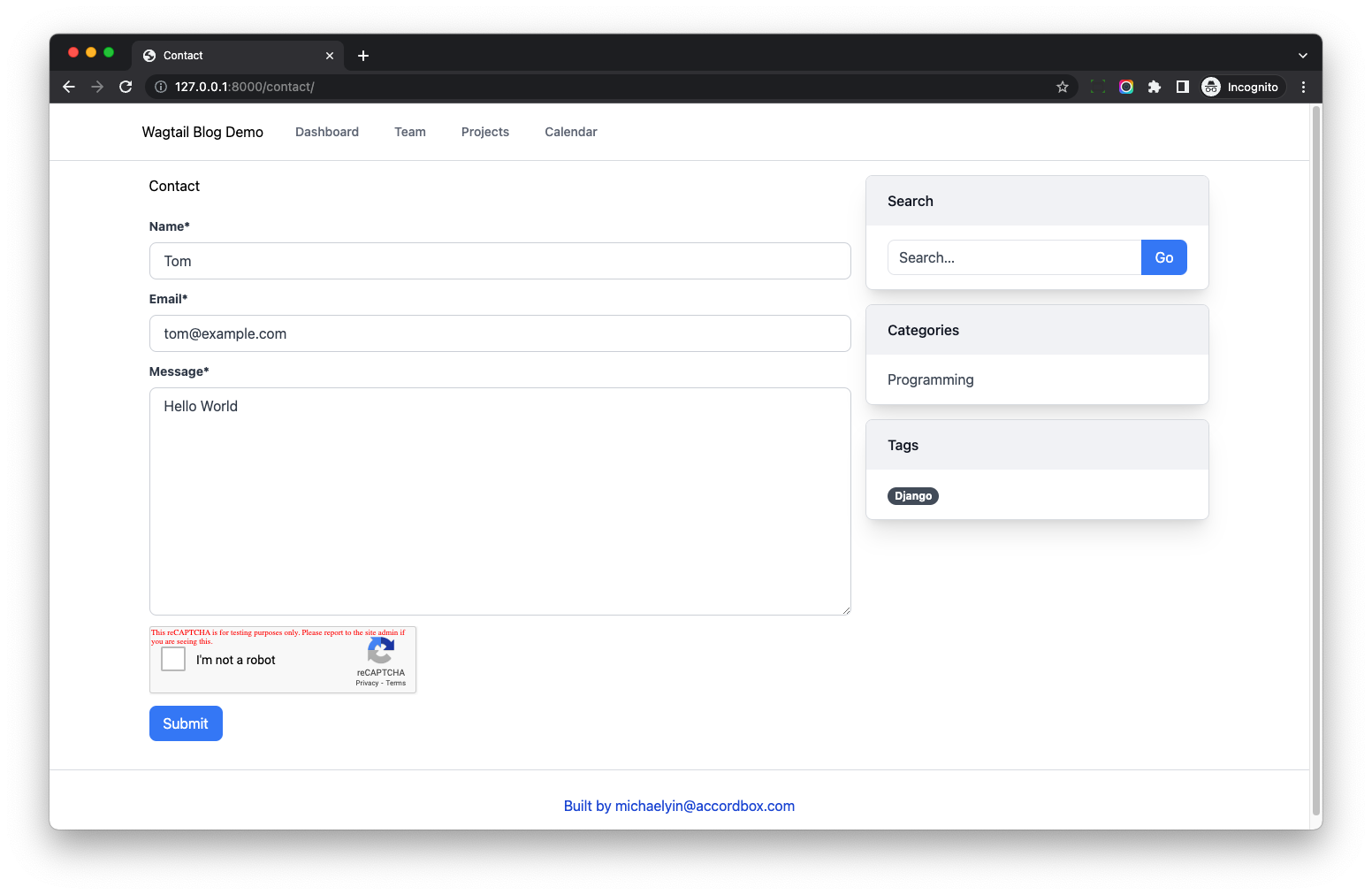 Next, let's test the form on http://127.0.0.1:8000/contact/
