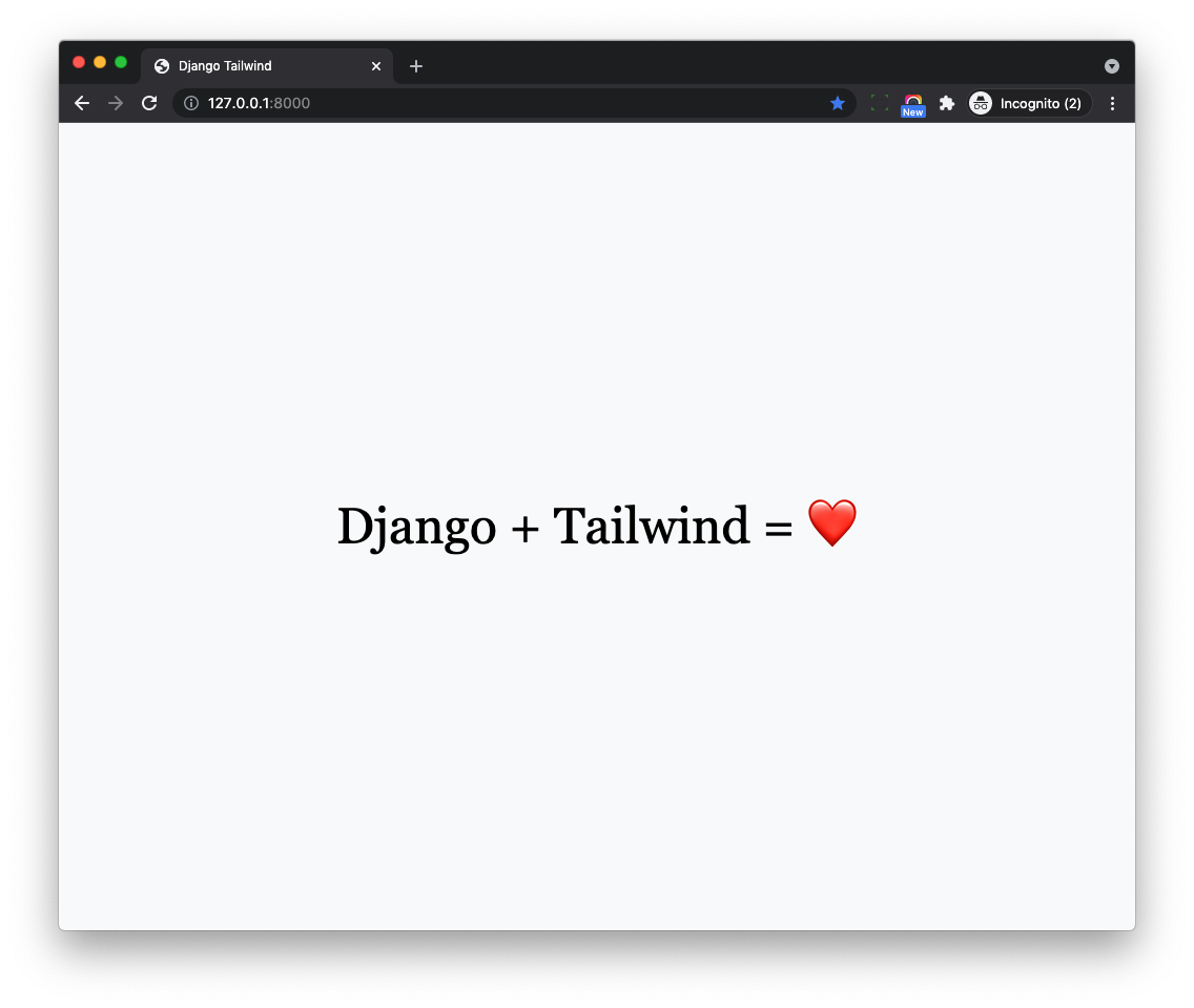 <h1 class="text-5xl">Django + Tailwind = ❤️</h1>