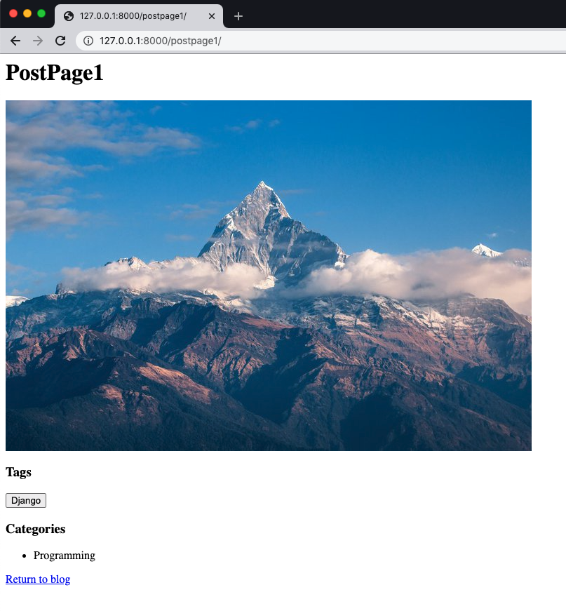 blog_page.html {% image page.header_image original %}is a Django template tag fromWagtailwhich can help us generate theimgtag. You can check Wagtail doc: Using images in templates to learn more.