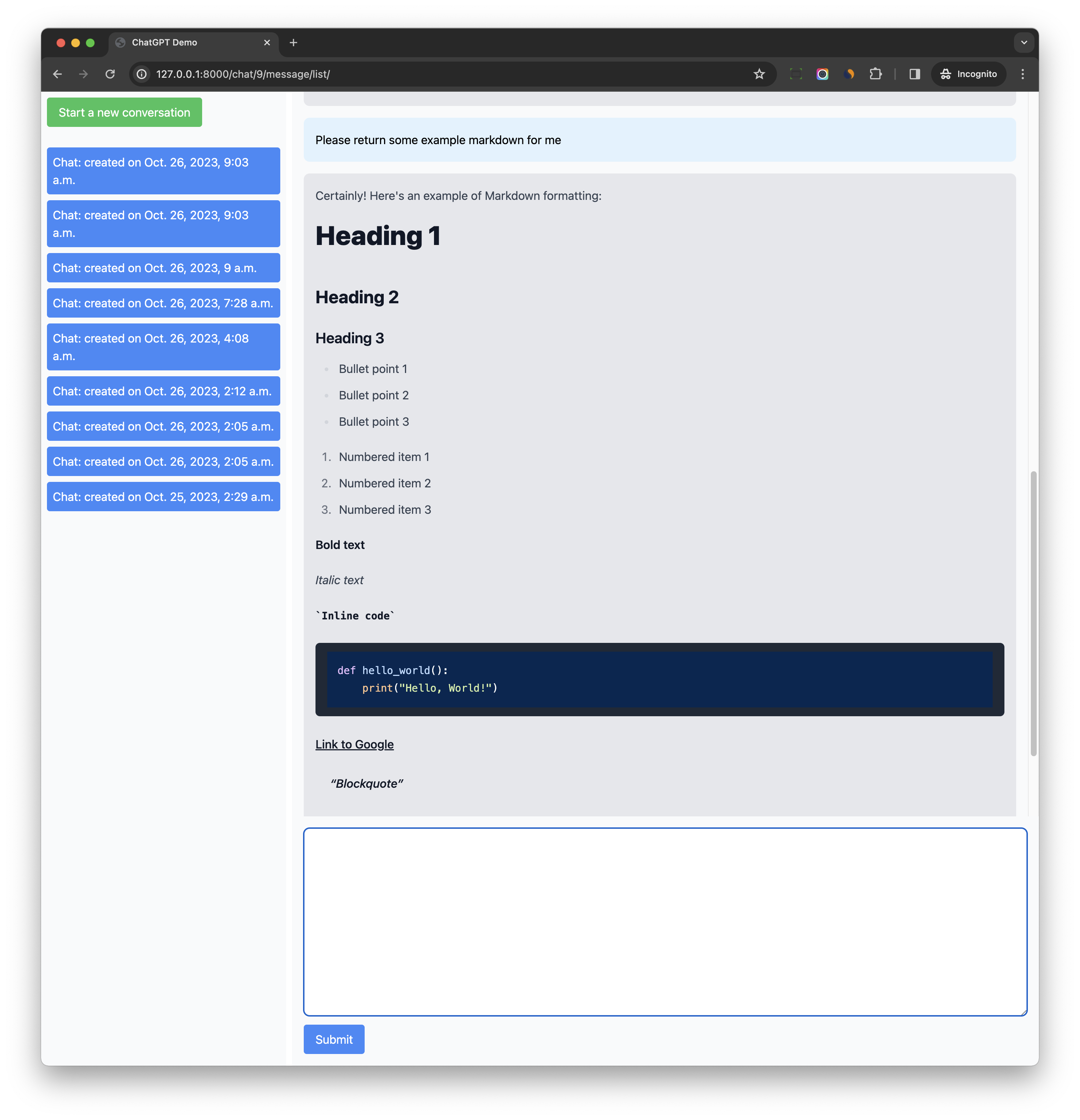 - The markdown rendering is also working, but the typography style is not good, we will fix it in the next section.